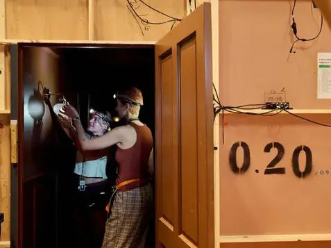 Barefoot and wearing headphones, audiences feel their way through a labyrinthine installation as an unseen narrator reveals a story of innocence lost and obsession unleashed.